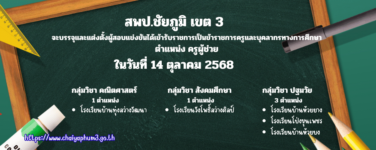 สพป.ชัยภูมิ เขต 3 เรียกบรรจุครูผู้ช่วย ในวันที่ 14 ตุลาคม 2568 จำนวน 5 อัตรา